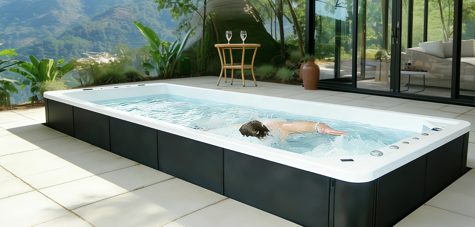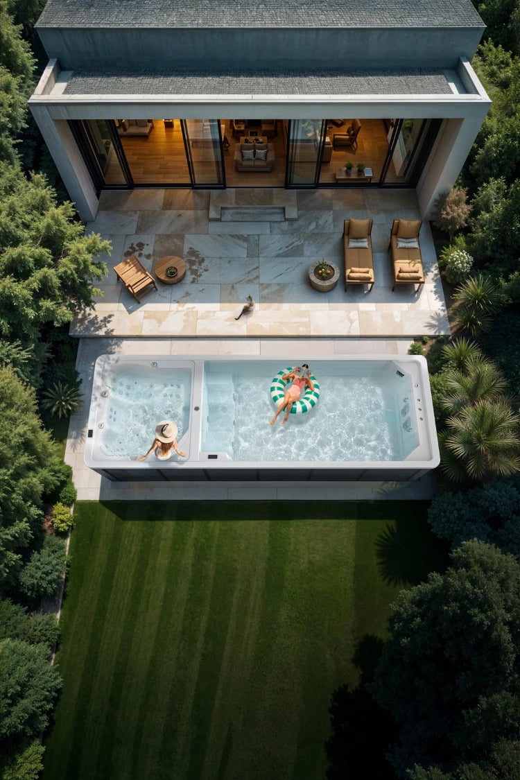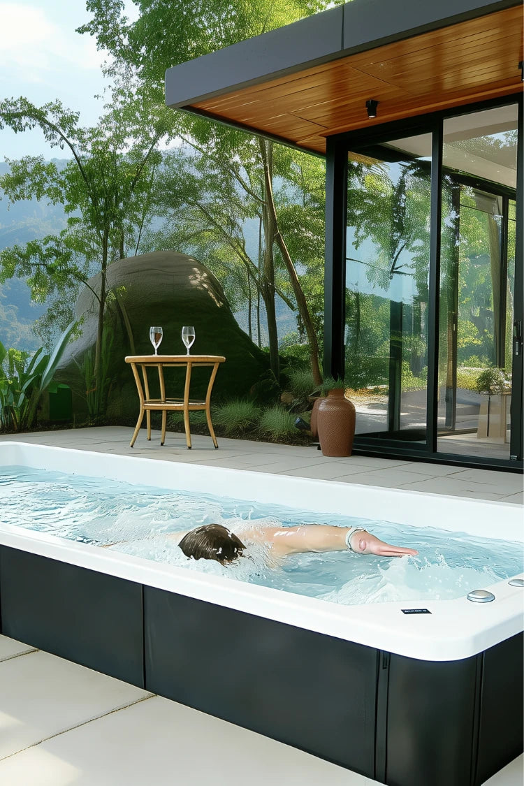 Begin de dag met een verkwikkende duik die zowel lichaam als geest verfrist. Onze swimspa biedt de voordelen van een volwaardig zwembad in een compact ontwerp.